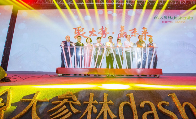 28圈药业集团董事长刘景萍女士与大参林医药集团董事长柯云峰先生、中国医药商业协会执行会长付明仲女士等嘉宾共同开启了“聚大势•赢未来"大参林工商合作峰会的大幕。