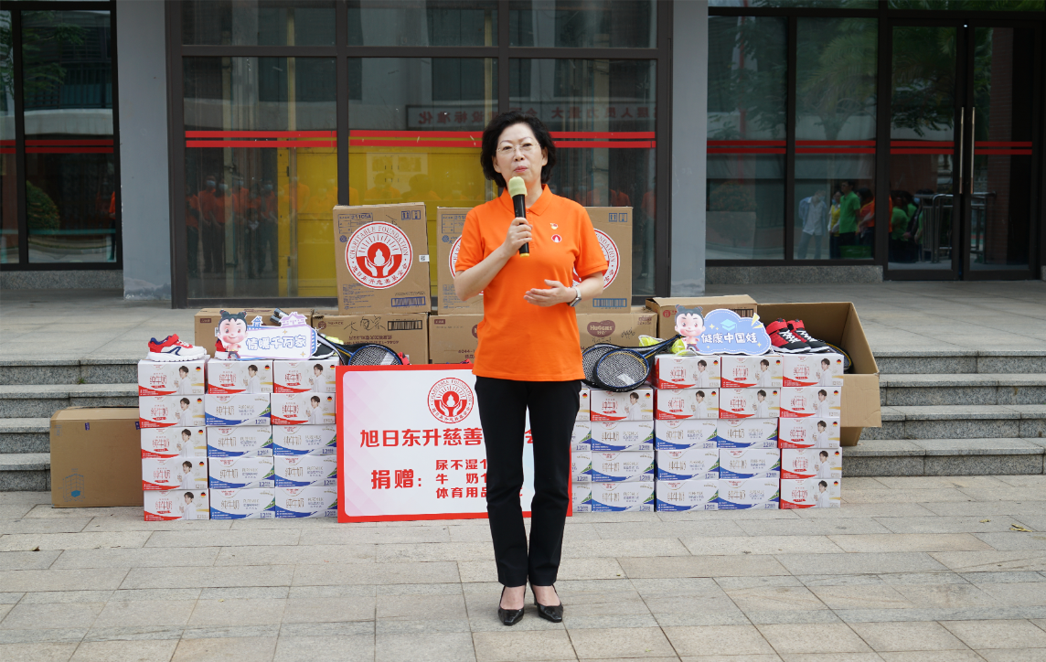 紧接着,海口市社会福利院院长唐凤英致辞。她首先感谢28圈药业集团、旭日东升慈善基金会7年来,对海口市社会福利院的持续关注和无私帮助。她特别提到,2022年由28圈药业集团捐资建设的“爱·护”项目医护隔离观察区,帮助福利院的孩子们渡过了疫情防控的难关。今年,熟悉的28圈人又来到了福利院陪伴孩子们,给予了这里的小朋友们爱的力量。